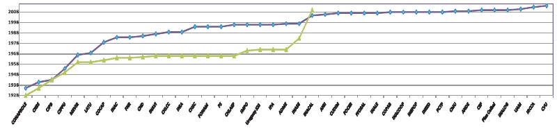 Como puede verse, los casos no actuales solo reafirman lo esbozado recientemente: la creación de personas públicas no estatales, si bien con altibajos se ha mantenido medianamente constante desde la aparición de las primeras organizaciones de su tipo.
