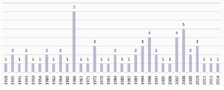 Como puede verse en el gráfico que antecede, en general en el resto de los años se crean una o dos por año.