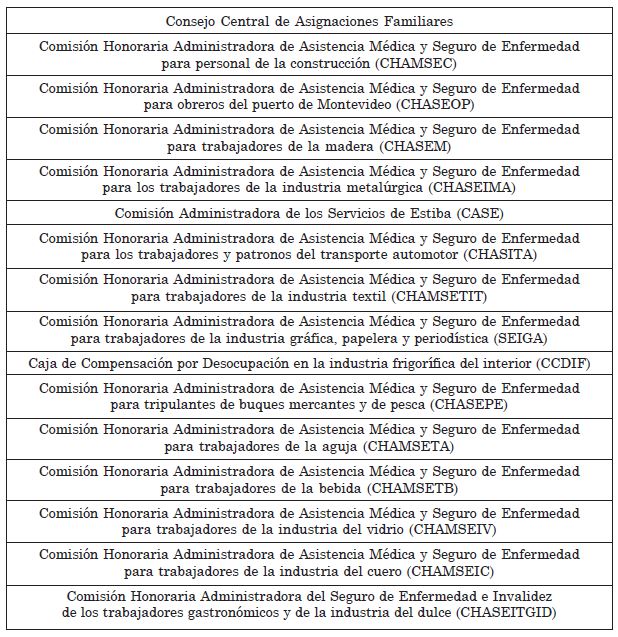 De acuerdo a lo analizado por Delpiazzo (2006:159), en 1973 se establece la Comisión Interventora de los Seguros de Enfermedad e Invalidez (CISEI) – sustituyendo las Comisiones Administradoras de dichos seguros. Lo mismo ocurre respecto del Consejo Central de Asignaciones Familiares y las Cajas respectivas.